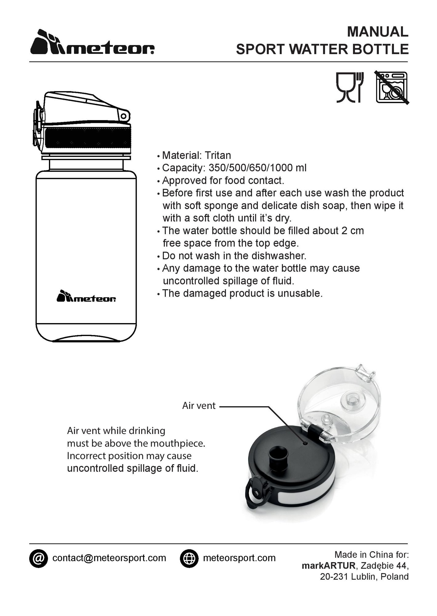 A practical bottle by Meteor, which you can take with you to training, the gym, school, or a cycling trip – the perfect everyday companion. It motivates you to lead a healthy lifestyle and offers a range of conveniences that make it hard to find a better product.