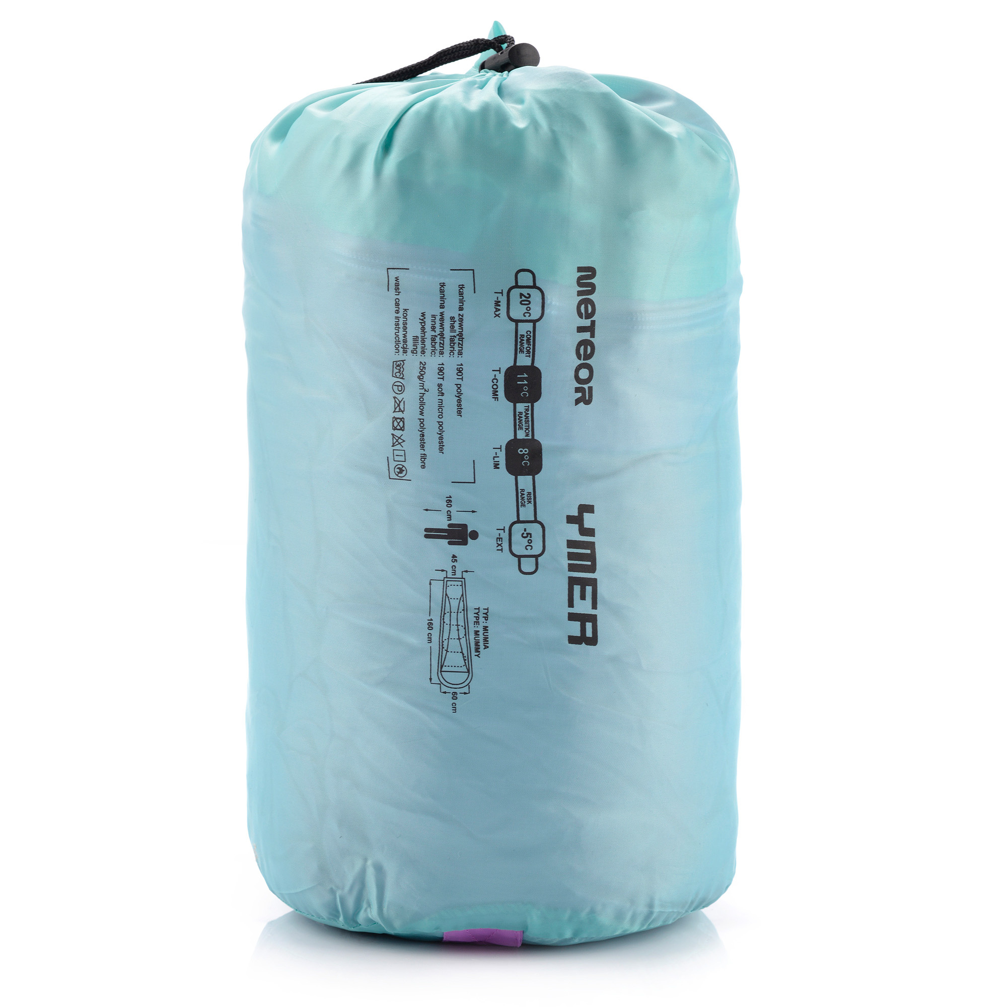 The Ymer model is a kids' version of Meteor sleeping bags, designed with their needs in mind. The polyester lining offers exceptional comfort and a soft feel to the touch. The Hollow Fiber filling enhances thermal insulation, without adding extra weight or bulk to the standard size.