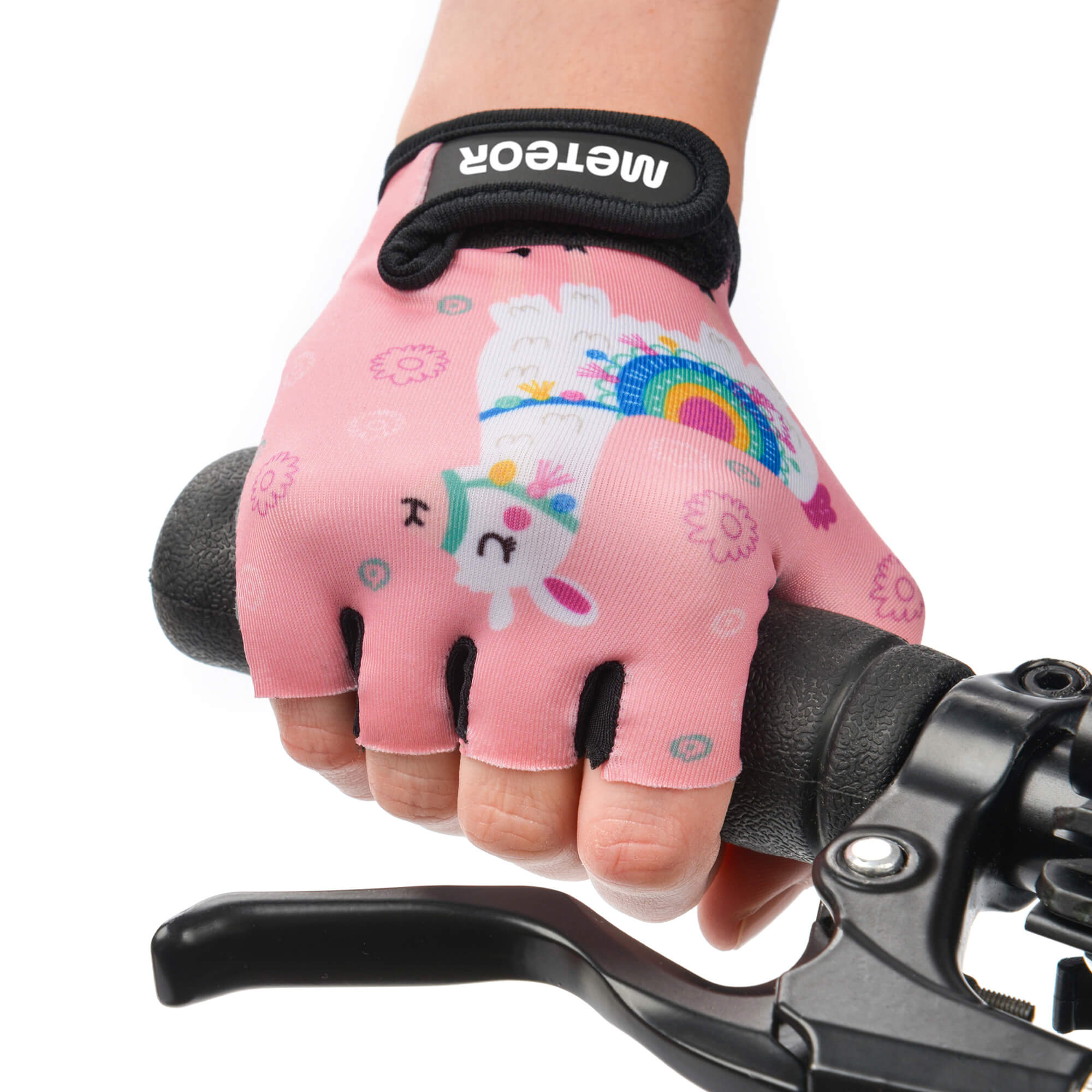 Meteor cycling gloves protect the most sensitive area of ​​the hand. The inner part is made of delicate, soft eco-leather. The material is supplemented with shock-absorbing foam inserts. The outer part is made of a soft material with a colorful print.