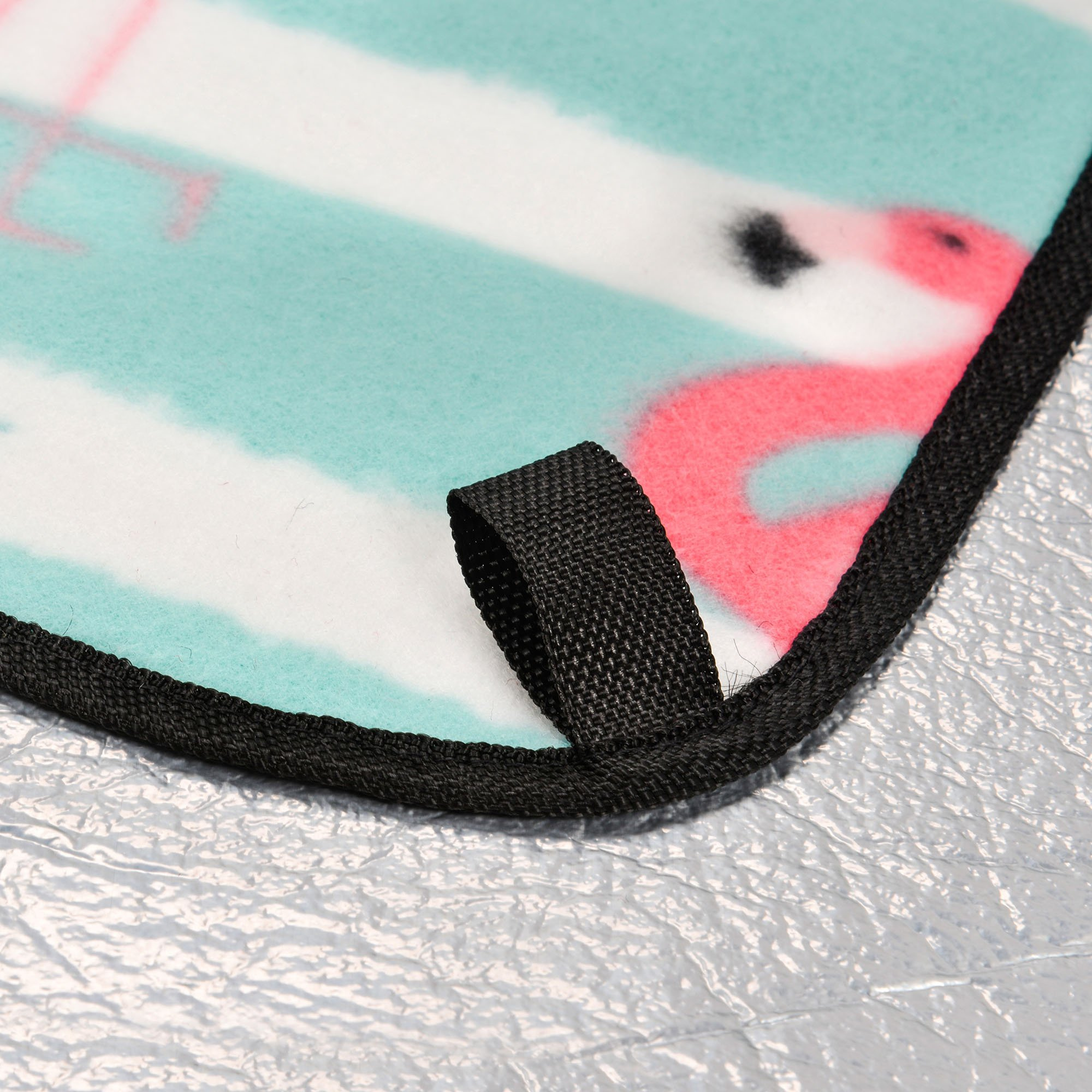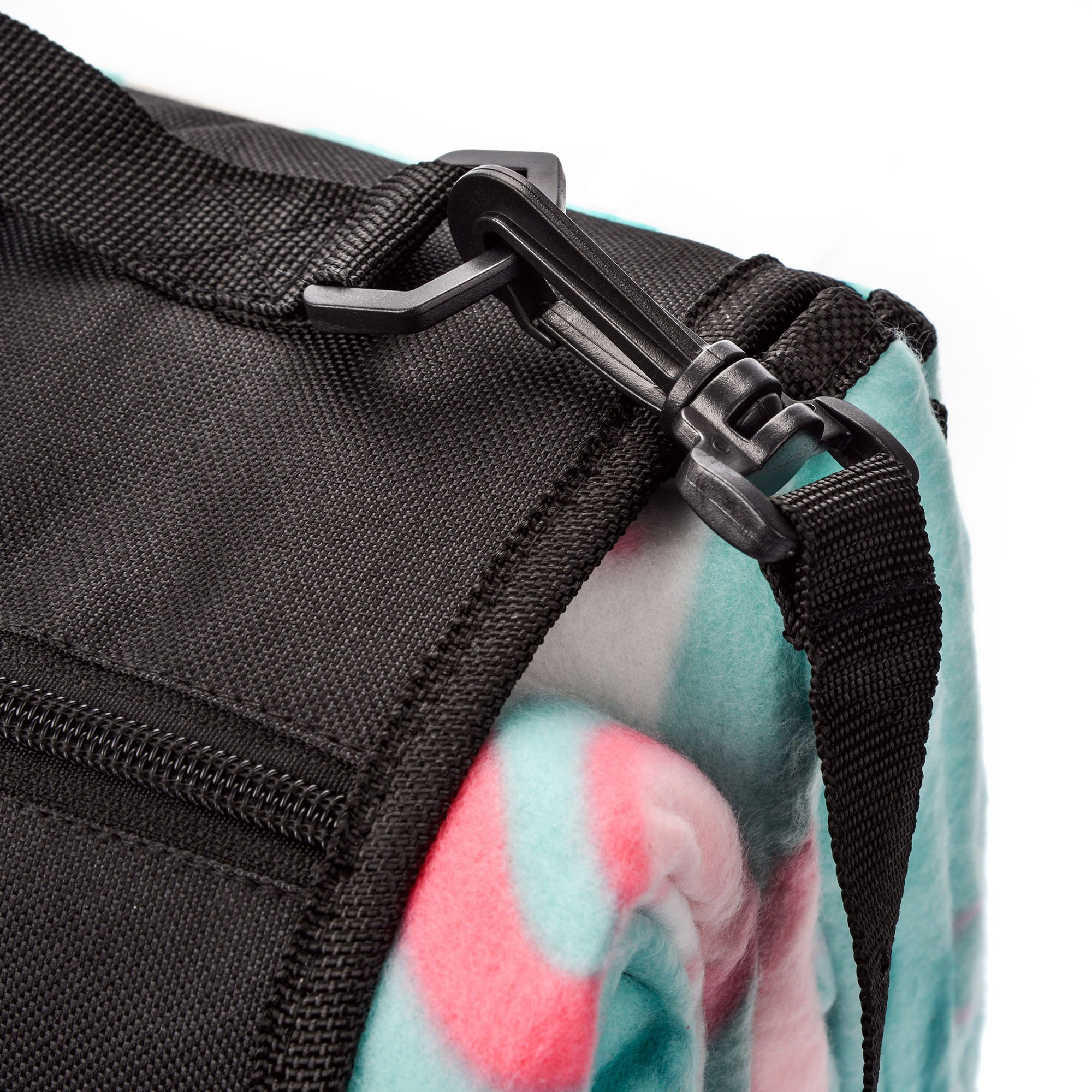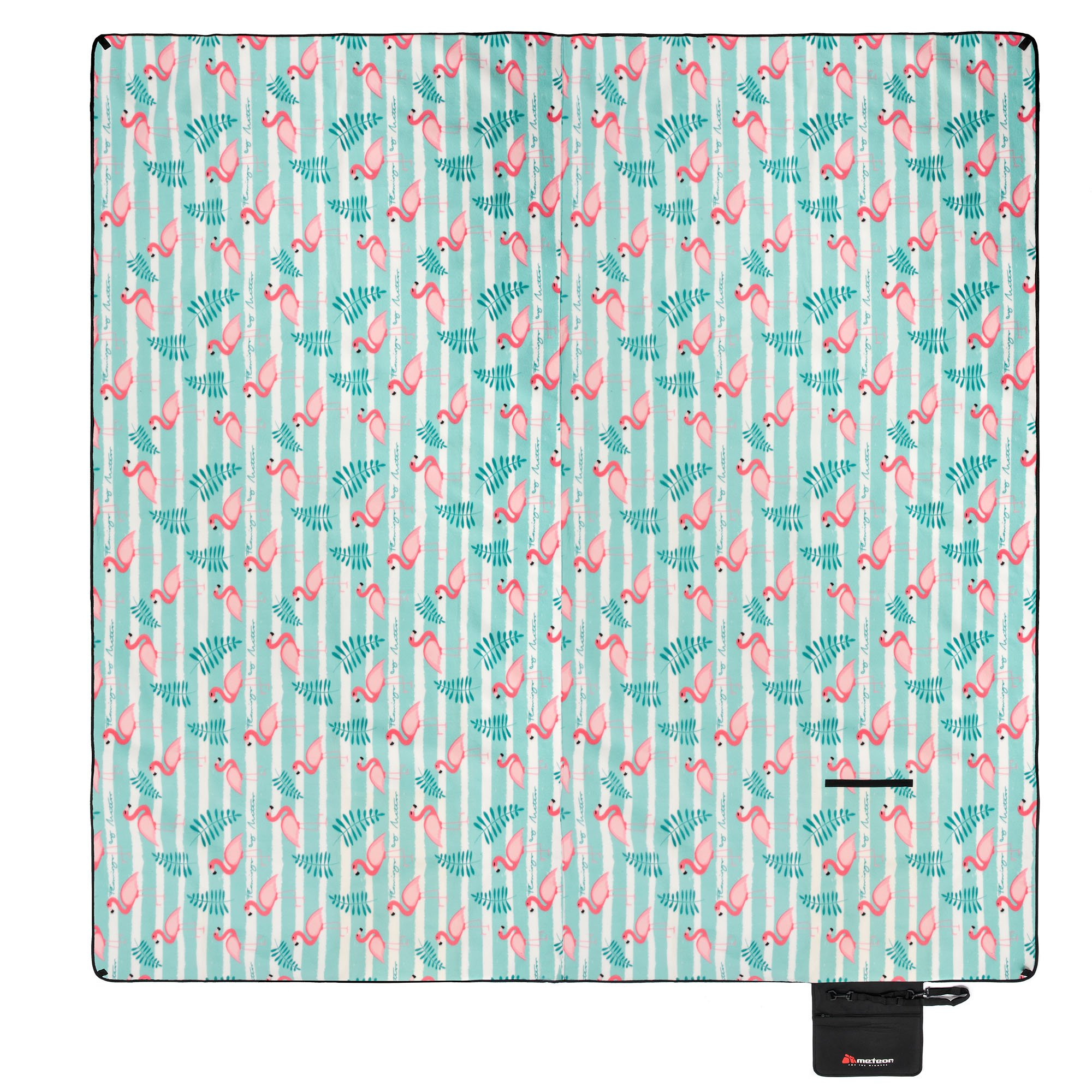The blanket is easy to fold, takes up little space and a sewn handle and an adjustable shoulder strap make it easy to carry. Zipped pocket allows easy storage of keys, documents or wallet. Loops placed in each corner of the blanket make it easier to attach to the ground with herring.