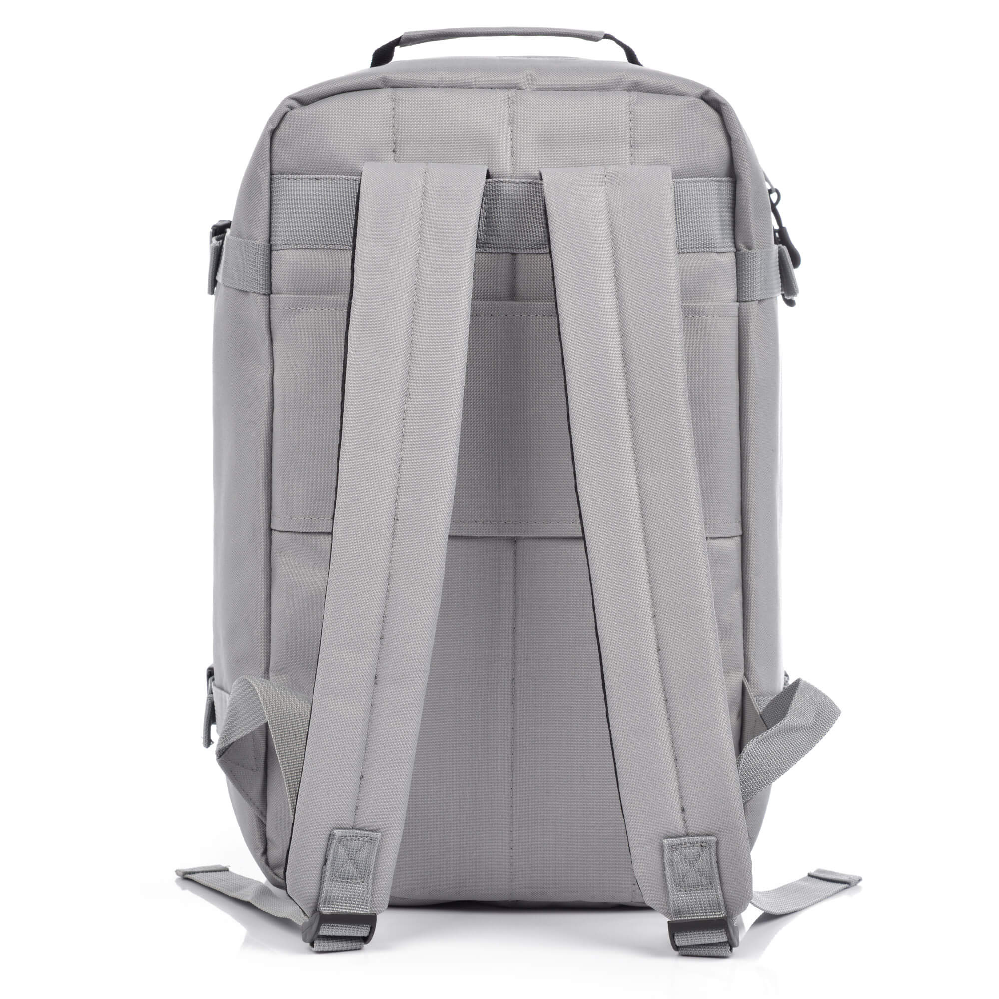 The backpack’s design includes ergonomic closures and adjustable straps, allowing for individual adjustment to the user's figure. The straps are padded with foam panels, which improves air circulation and reduces pressure on the shoulders. Additionally, thanks to extra straps, the feature allows for flexible space management depending on the amount of luggage carried.
