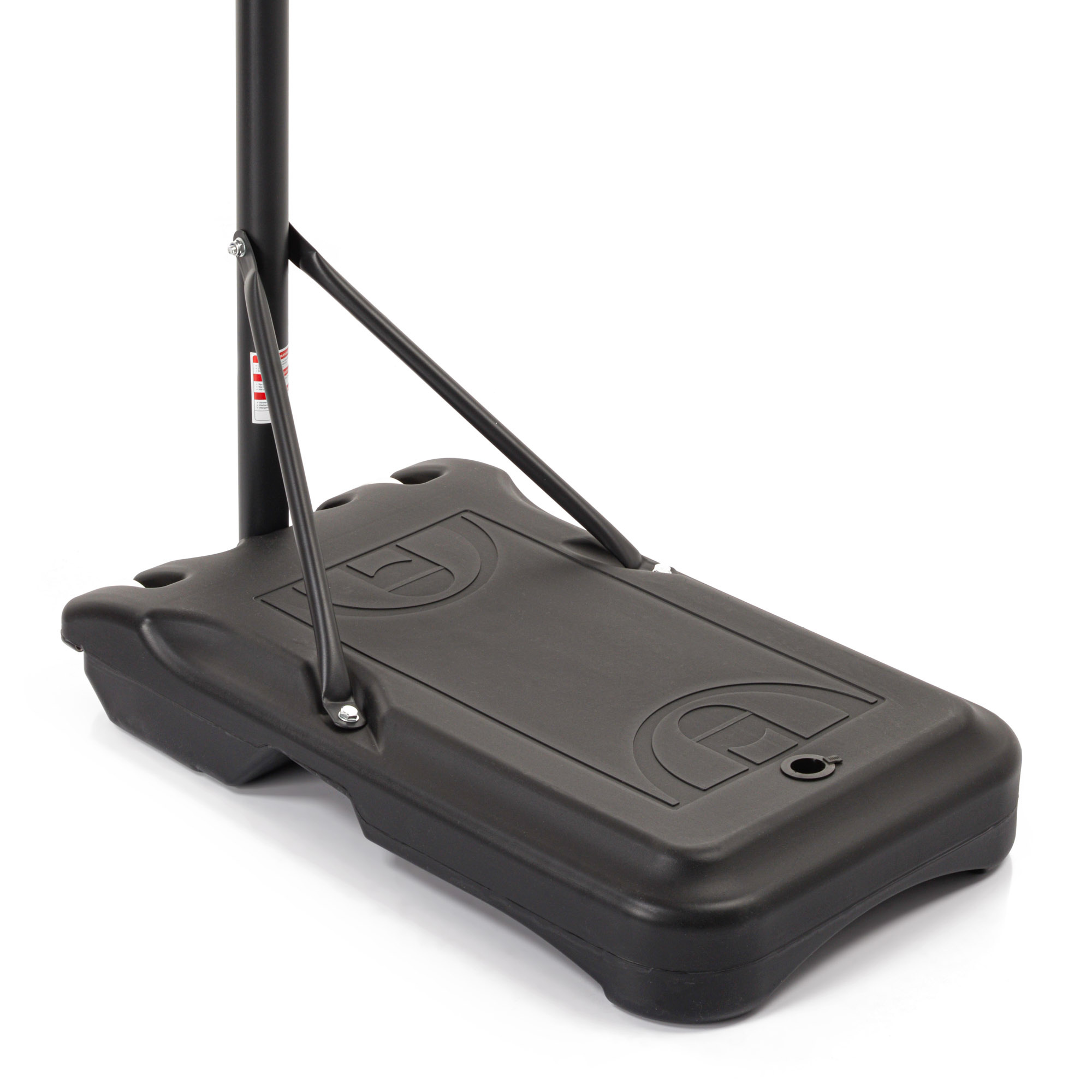 Well-thought-out design – the mobile base, fillable with sand or water, is stable and durable thanks to its synthetic construction. Metal braces connect the base to the metal frame, providing long-term usability. The nylon net and PP backboard do not absorb water and withstand powerful shots.