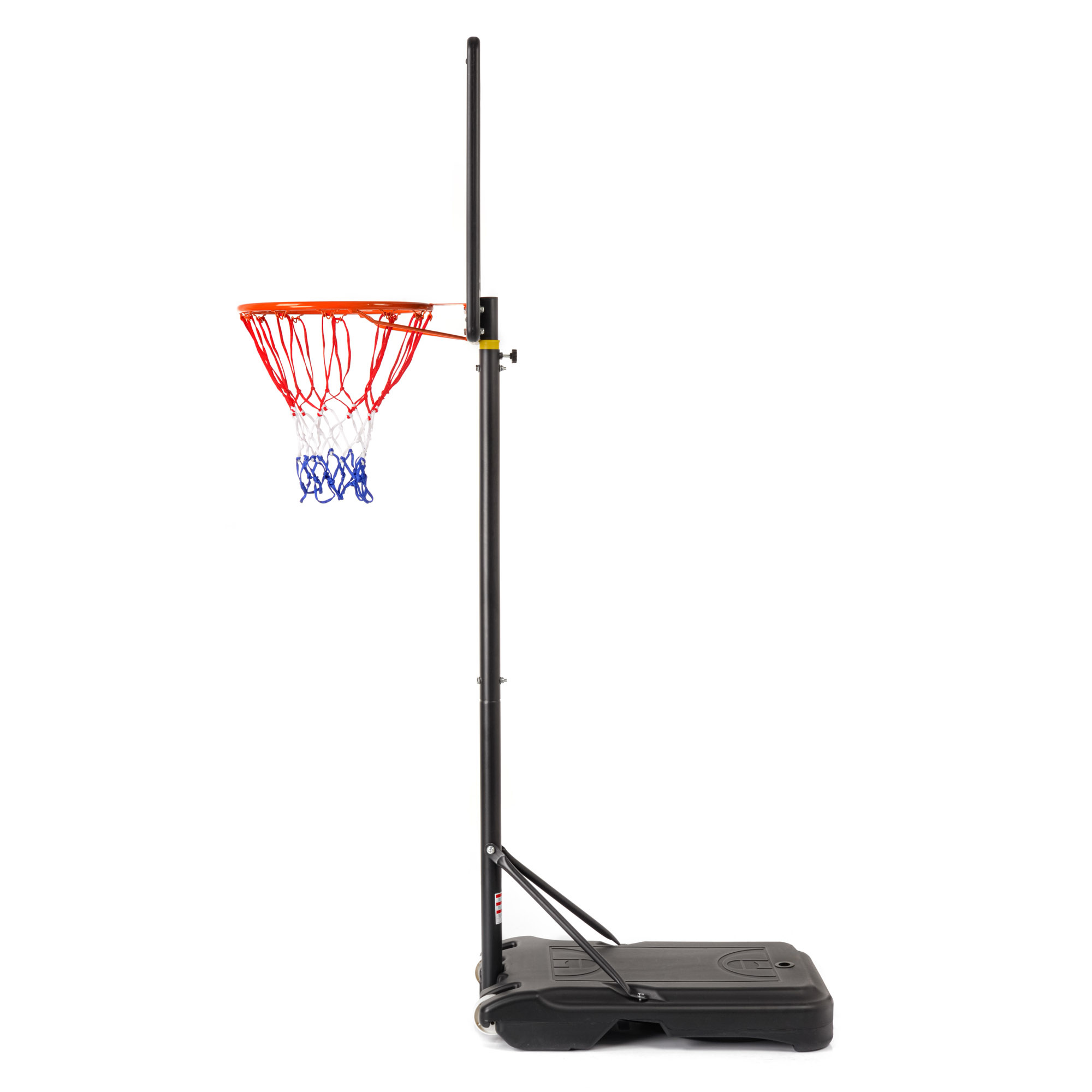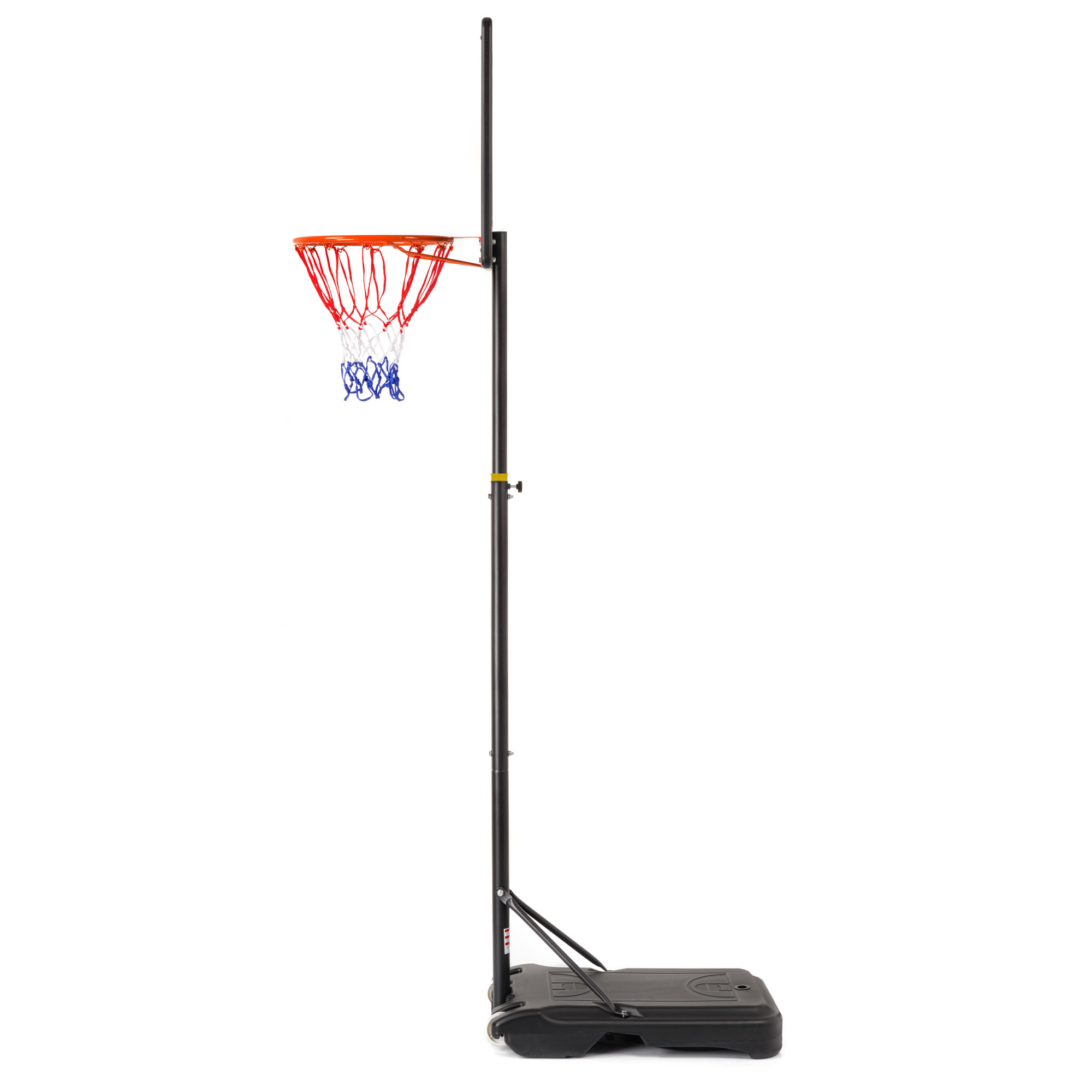 The Dallas model features a 40 cm diameter hoop. Practical height adjustment from 160 to 210 cm makes the set ideal for players of various heights and skill levels. Simply unscrew the locking bolt, set the hoop to the preferred height, and re-tighten the bolt. The set weighs 10 kg, and the base can be filled with water or sand to effectively increase stability during dynamic gameplay.