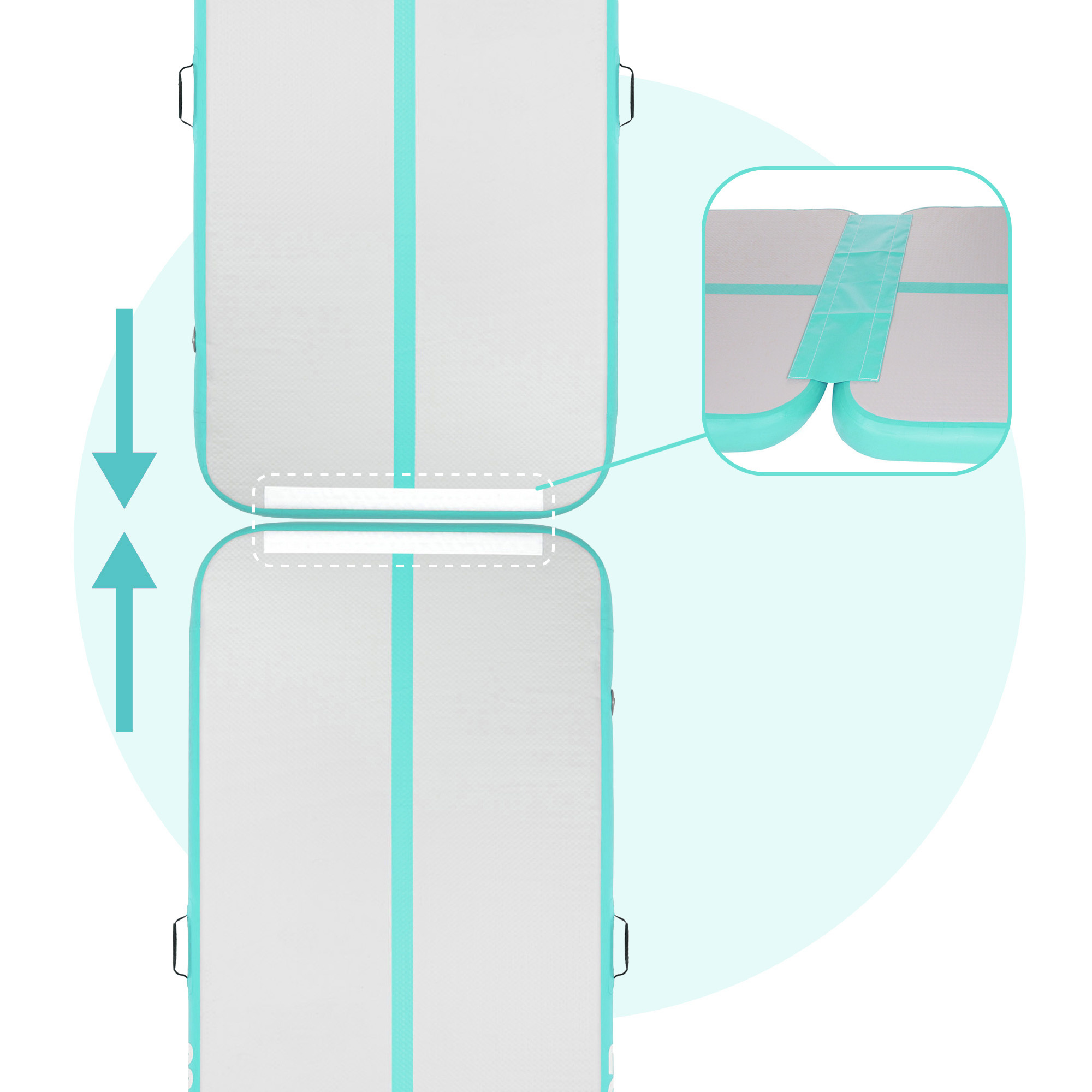 To expand the exercise area, two tracks can be connected using a velcro strap (not included). Airtracks can be joined by their short edges, regardless of their size differences, creating a seamless long runway for gymnastics and acrobatics.