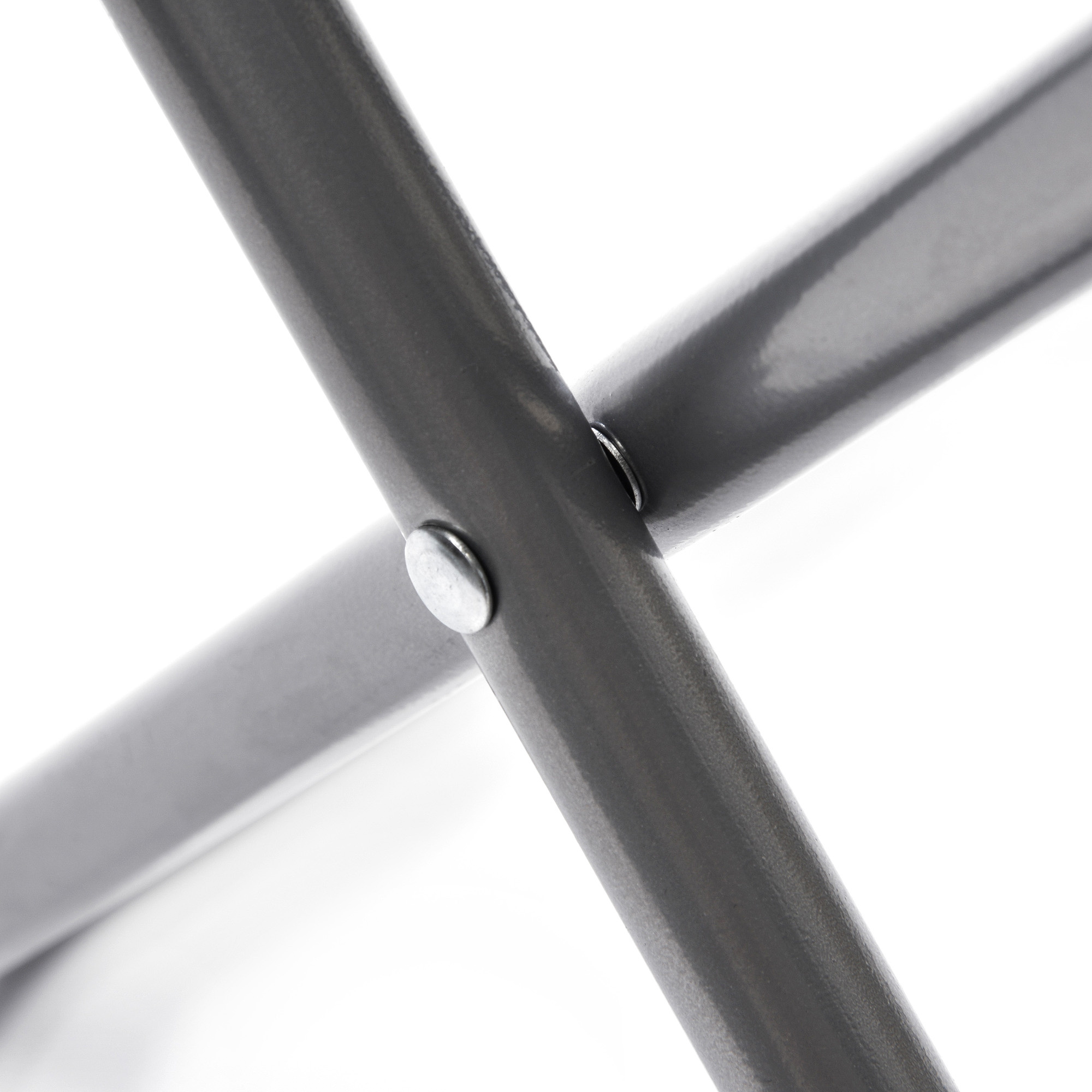 Der aus leichten Materialien gefertigte Hocker Rest wird problemlos in jeden Kofferraum passen und sein geringes Gewicht stellt keine zusätzliche Belastung dar. Die Sitzfläche des Hockers, die aus gegen atmosphärische Bedingungen beständigem Polyester gefertigt ist, garantiert Zuverlässigkeit und Beständigkeit. In Kombination mit dem pulverbeschichteten Stahlgestell gewährleistet Rest Stabilität und Sicherheit, unabhängig vom Platz und den Umständen. Ein unschätzbarer Vorteil des Rest-Hockers ist seine einfache Klappfunktion. Dank des einfachen Systems ist der Hocker im Handumdrehen anwendungsbereit.