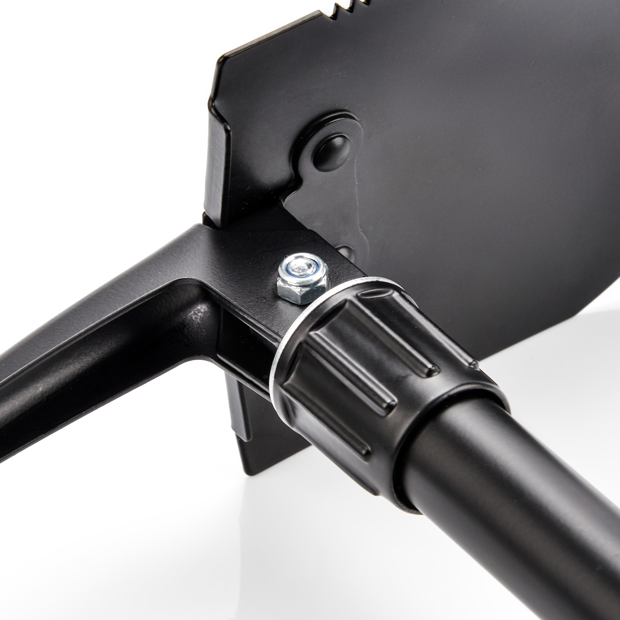 Gefertigt aus robustem Stahl mit schwarzer Schutzbeschichtung, ist er widerstandsfähig gegen schwierige Bedingungen und bereit, dem Benutzer mehrere Saisons lang zu dienen. Der Verriegelungsmechanismus erlaubt es, den Spaten schnell in eine Hacke zu verwandeln, wodurch die Arbeit in verschiedenen Situationen erleichtert wird. Mit einer speziellen Rille an der Kante kann der Spaten auch als Säge eingesetzt werden, was seine Nützlichkeit in verschiedenen Situationen noch erhöht. Darüber hinaus garantiert der große, ergonomisch geformte Griff einen sicheren Halt und Komfort.