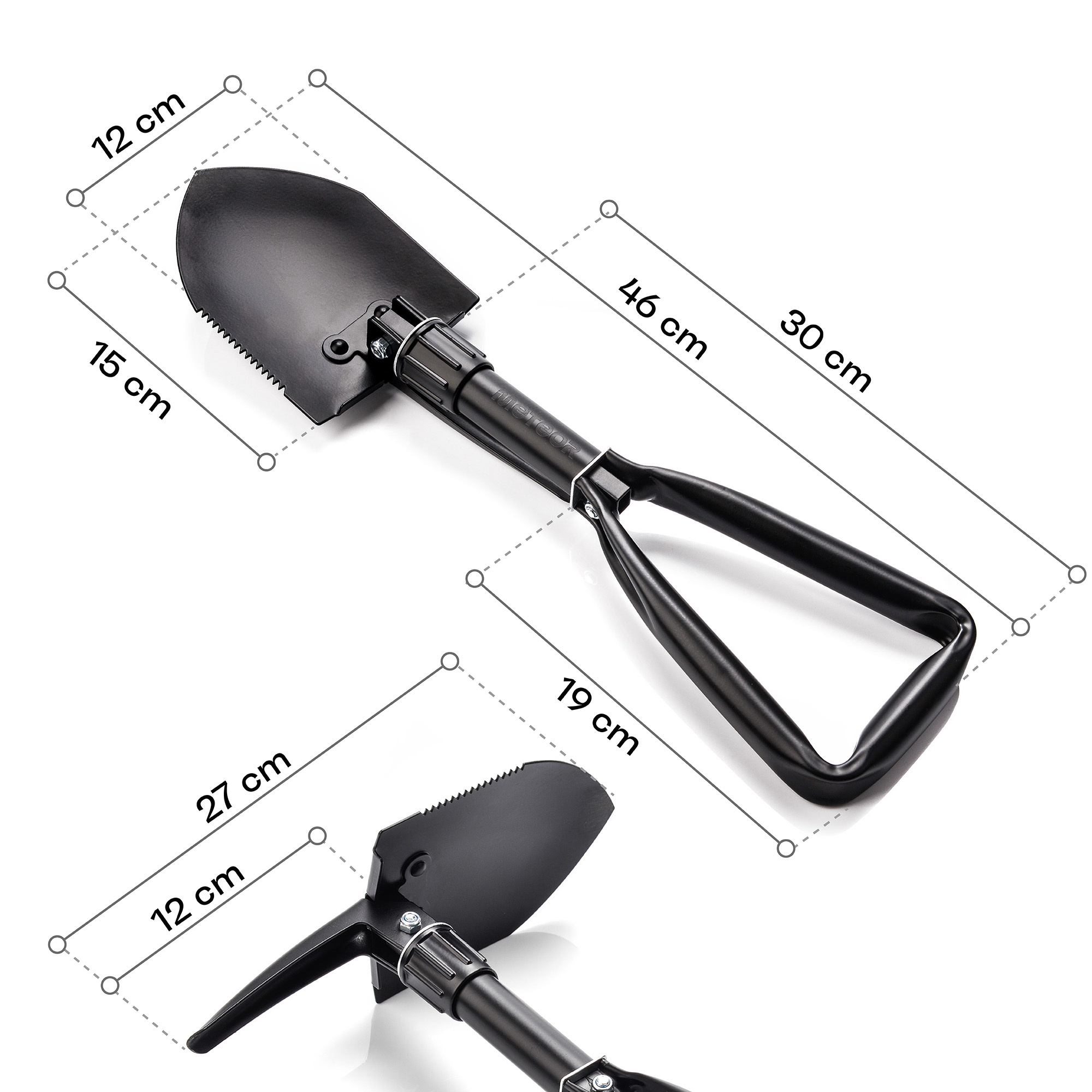Der kompakte und äußerst funktionelle Spaten von Meteor ist im Gelände unverzichtbar. Dieses Gerät wird schnell zu einem unerlässlichen Bestandteil der Ausrüstung eines jeden Outdoor-Fans.