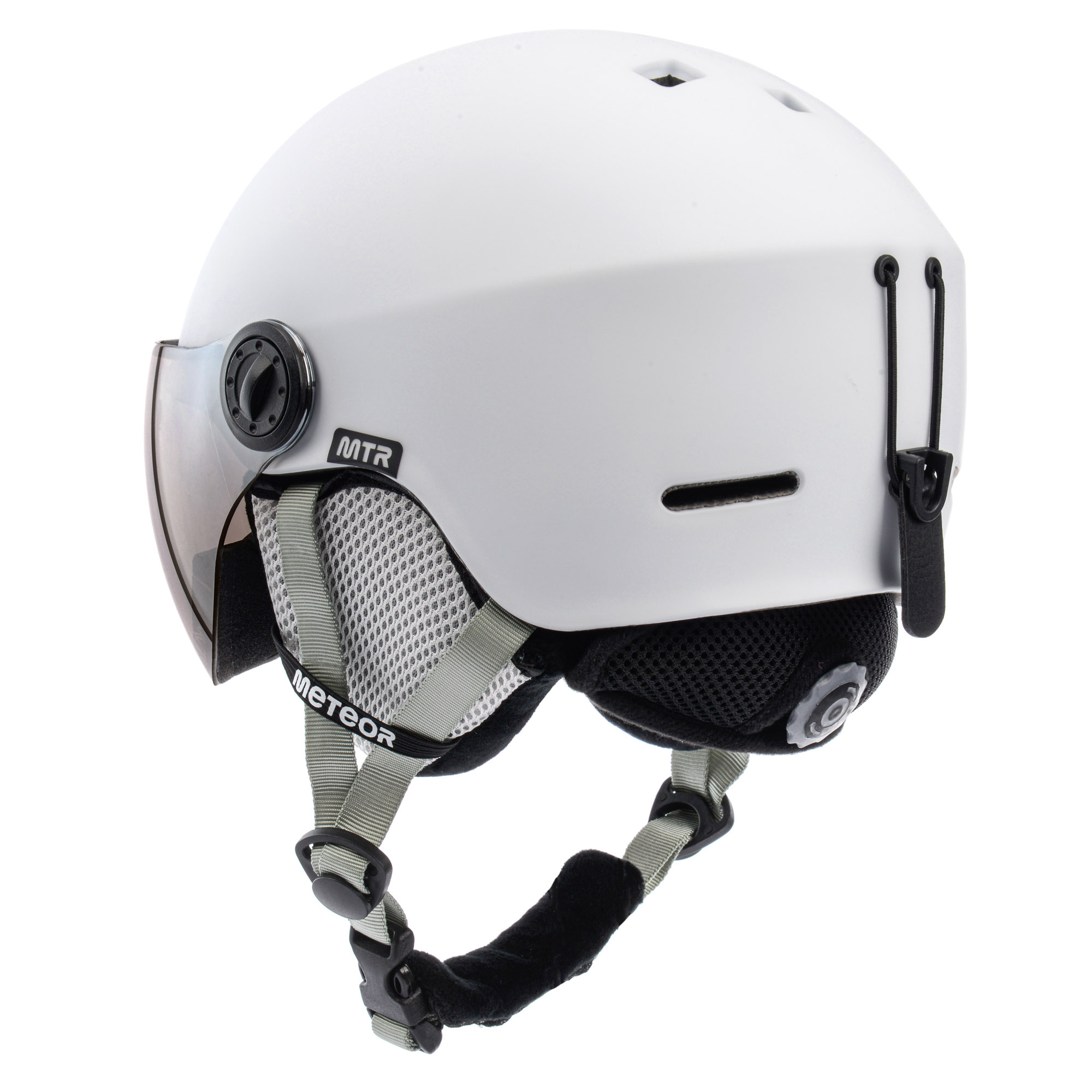 Der METEOR Skihelm bietet auch auf längeren Strecken einen hervorragenden Kopfschutz ohne Beschwerden. Es hat ein originelles und stilvolles Design, das anspruchsvollere Benutzer ansprechen wird. Perfekt für Winteraktivitäten wie Skifahren, Snowboarden und Rodeln. Diese Sportarten sind anfällig für Verletzungen und Verletzungen, und der Schutz gegen sie muss solide sein. Die bewegliche Linse bietet perfekte Sicht und vollen Schutz vor gegen UV-Strahlung. Je nach Wetterlage lässt sich das Glas leicht leicht angehoben oder abgesenkt werden.