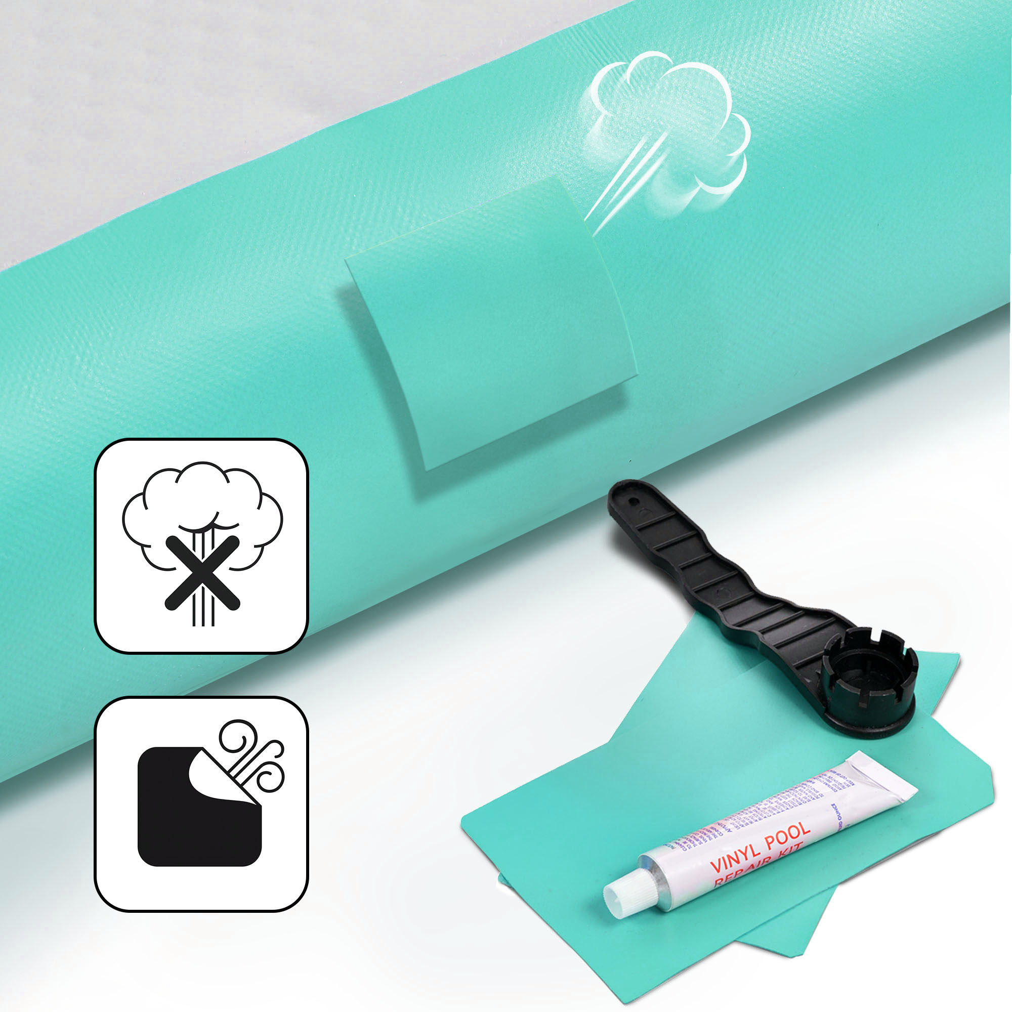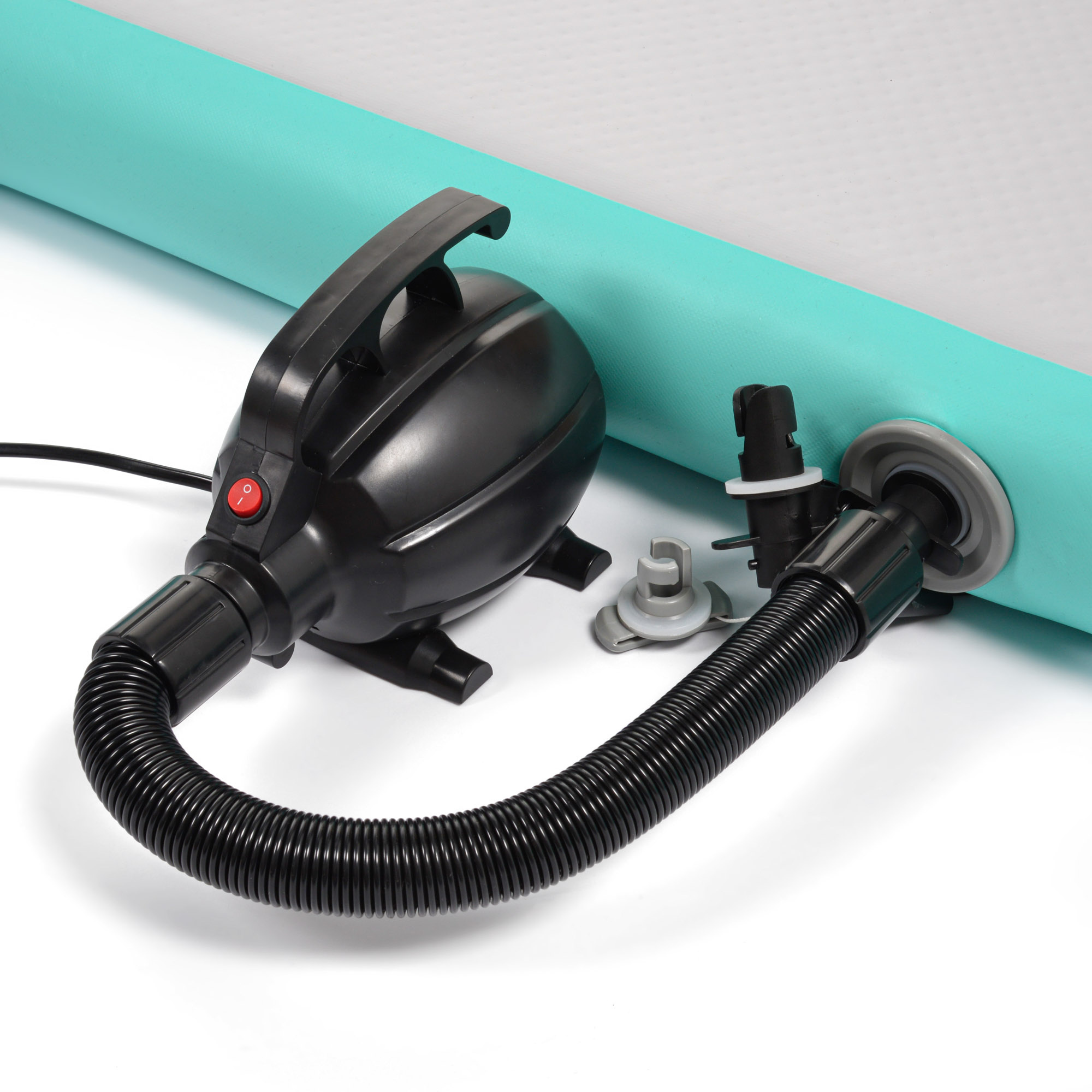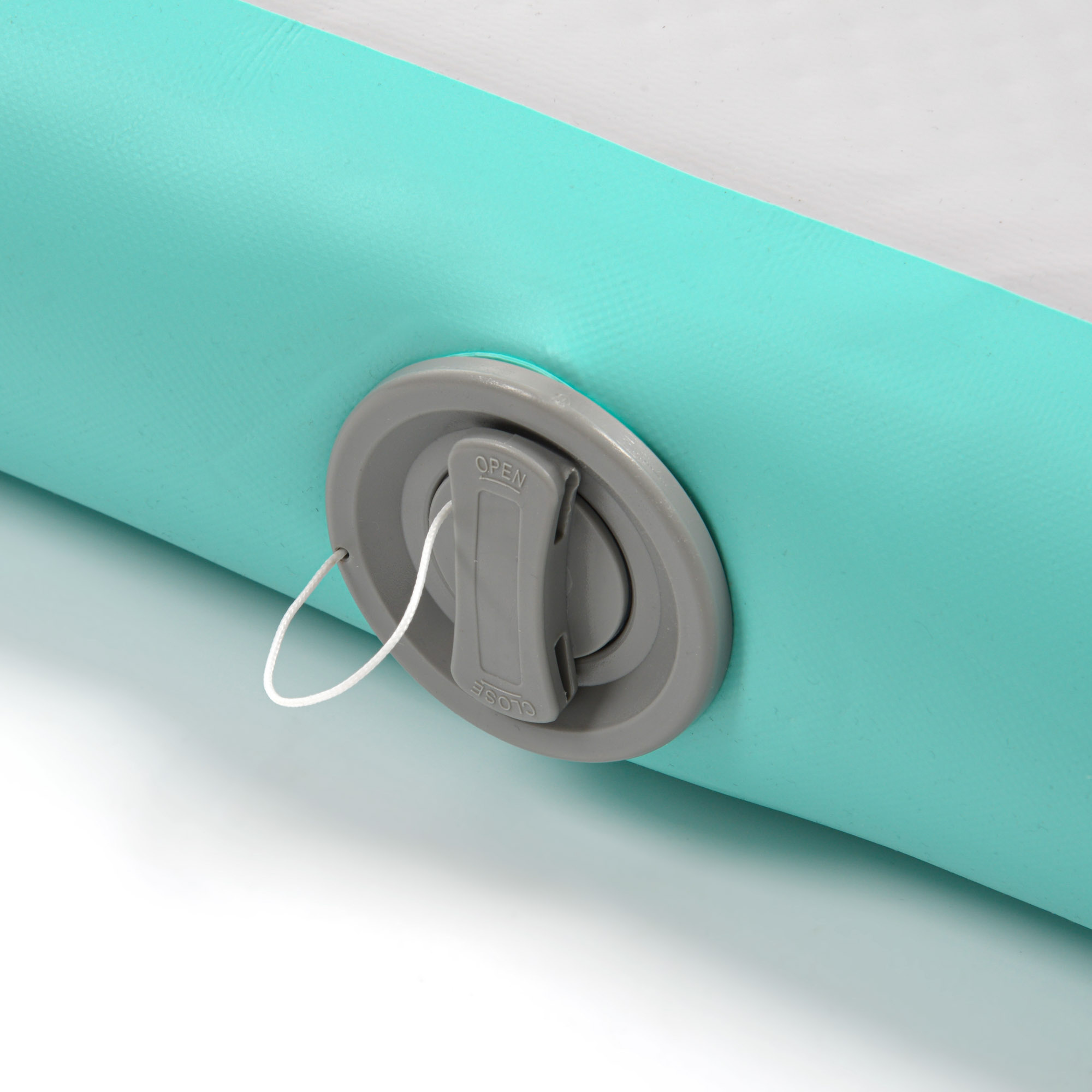 Im Lieferumfang der Matte befindet sich zudem ein Reparaturset, das die Ausbesserung verschiedener Bereiche der Matte ermöglicht, sowie eine Pumpe, die das Auf- und Abpumpen erleichtert. Dank der Möglichkeit, die Matte aufzupumpen, lässt sich ihre Sprungkraft individuell anpassen (d.h. je nach Alter, Fähigkeit und Körpergewicht des Benutzers). Das erweitert deutlich die Einsatzmöglichkeiten der Matte im Training. Eine einmalige Luftbefüllung ermöglicht ein langes und komfortables Training. Die Matte kann mit einer Pumpe oder manuell entleert werden. Nach dem vollständigen Luftablass lässt sie sich einfach zusammenrollen und in der mitgelieferten Tasche verstauen, um sie bequem aufzubewahren oder sicher zu transportieren.