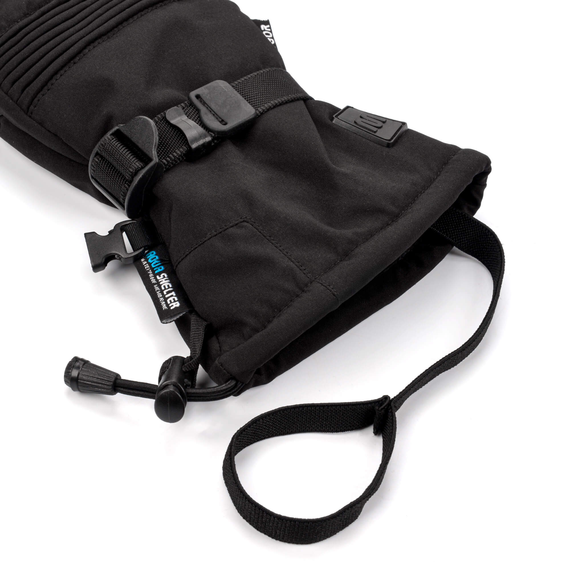 Ergonomie – Die Verstellung mittels Rippbündchen, Schiebeschnallen und Gummibändern am Handgelenk schützt das Innere der Handschuhe vor Kälte und Schnee von außen. Gleichzeitig sorgen sie dafür, dass die Handschuhe an ihrem Platz bleiben und nicht von der Hand rutschen.