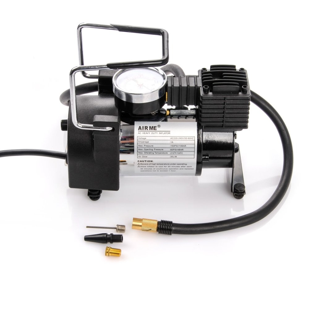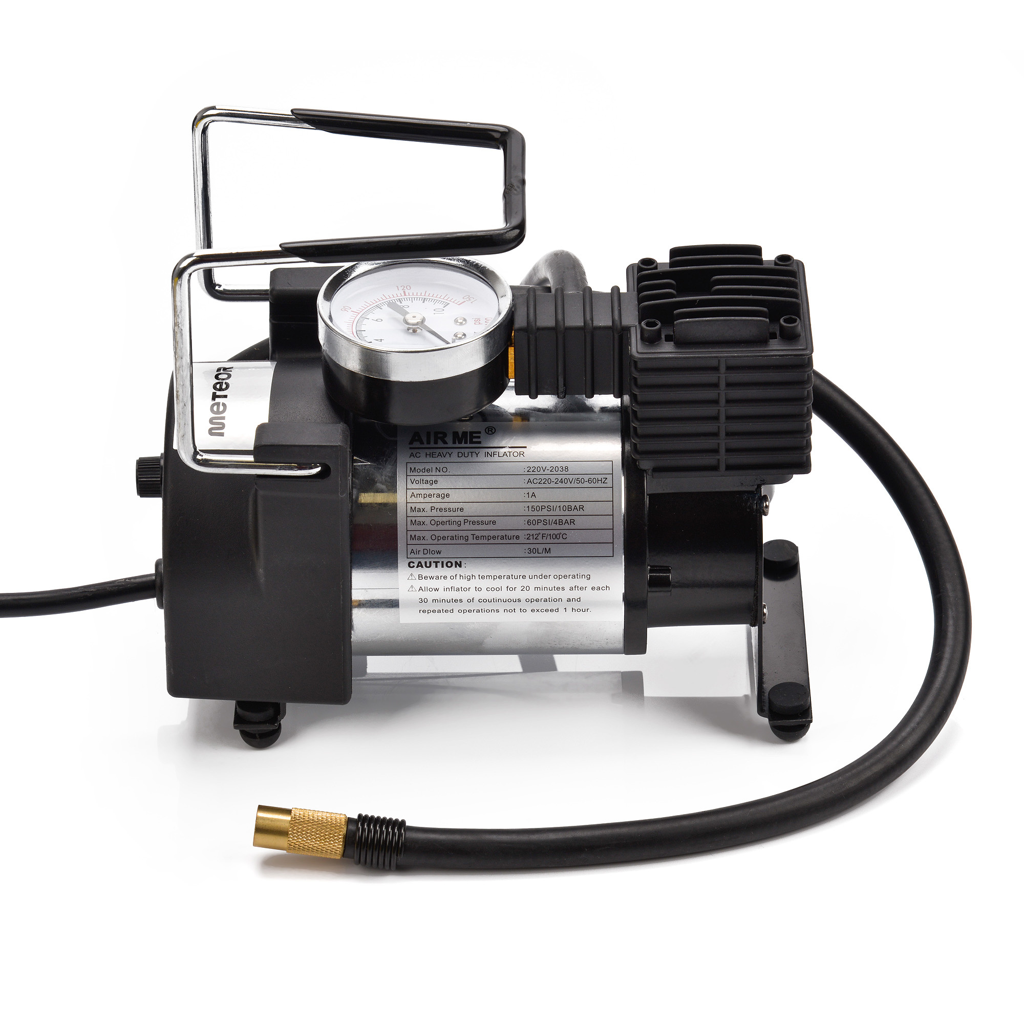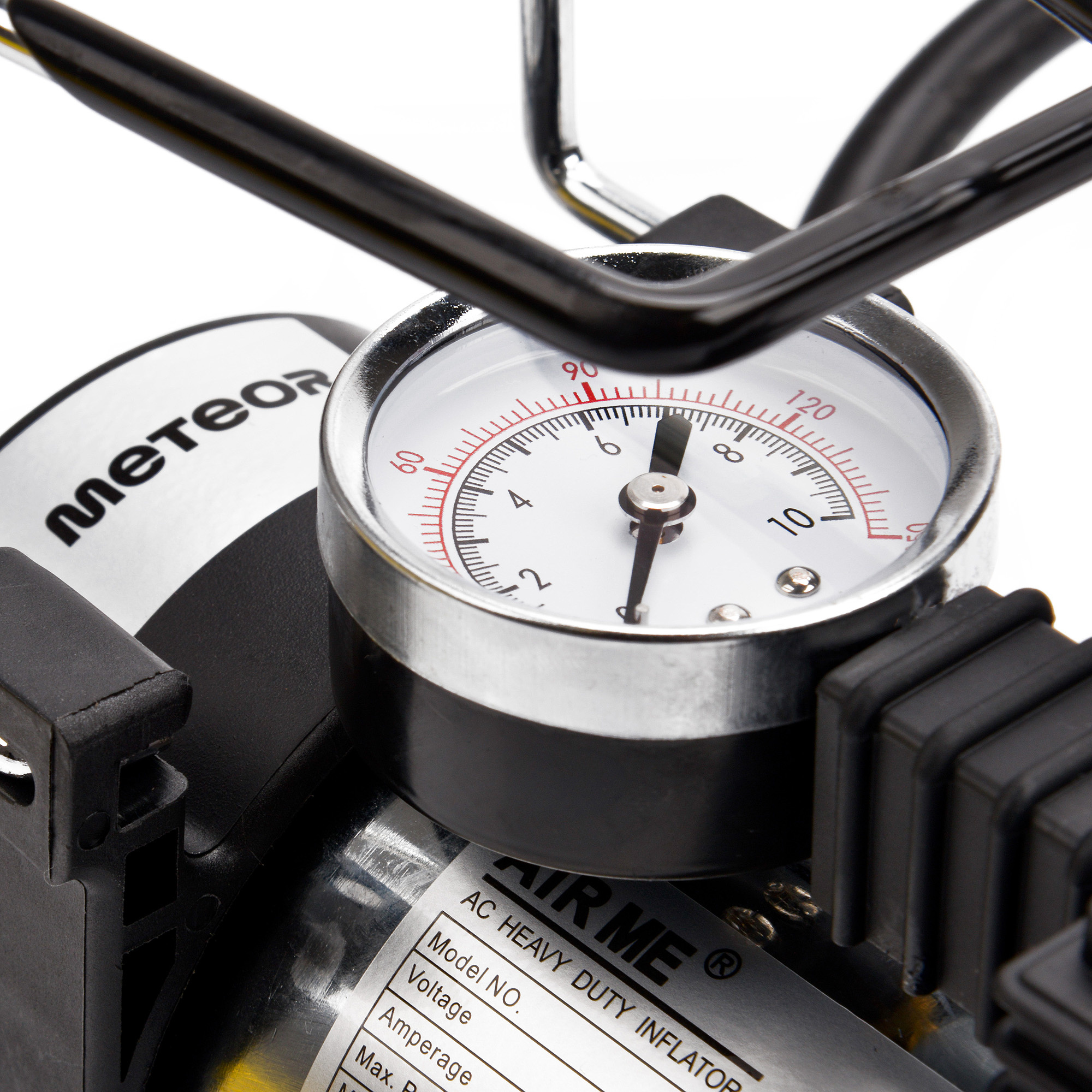 Kompresor został wyposażony w czytelny manometr wskazujący dwie jednostki: BAR i PSI. Maksymalne ciśnienie kompresora wynosi 150 PSI/10 BAR. Natężenie przepływu powietrza osiąga 30l/min, co sprawia, że urządzenie jest bardzo wydajne i funkcjonalne. Zasilanie sieciowe (AC 220-240V) umożliwia wygodne korzystanie z kompresora w dowolnym miejscu.