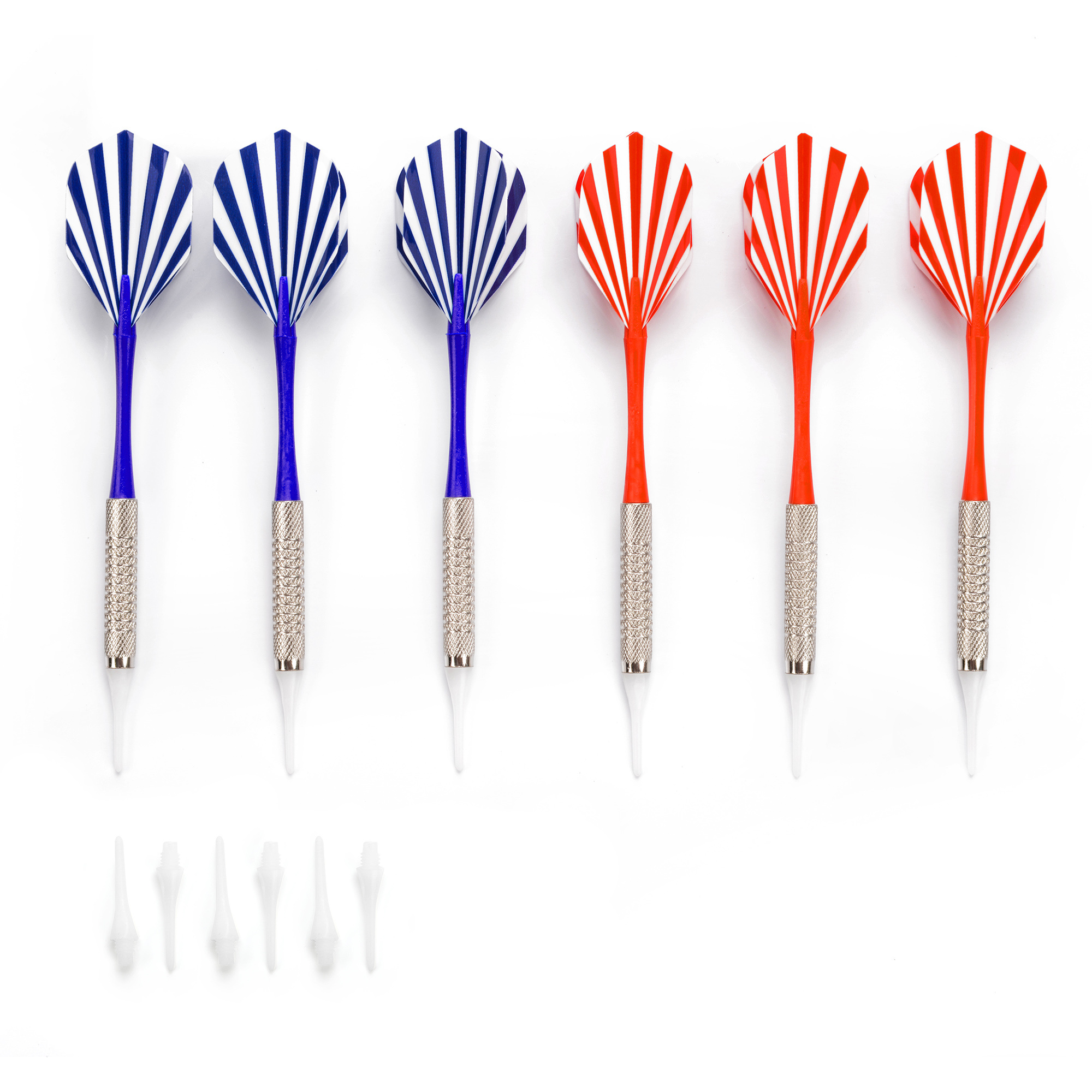Zestaw zawiera tarczę, 6 rzutek (w 2 kolorach), 6 zapasowych końcówek oraz czytelną instrukcję z objaśnieniem gier. Tarcza zasilana 3 bateriami AA (brak w zestawie) ułatwia swobodne rozpoczęcie gry w dowolnym miejscu, bez potrzeby podłączania do gniazdka elektrycznego. Idealnie sprawdzi się zarówno w domu, jak i w biurze czy klubie.