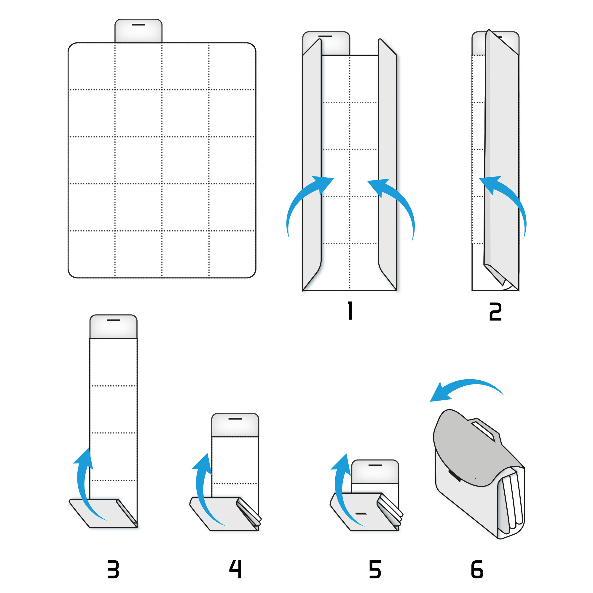 Koc jest łatwy do złożenia, posiada zapięcie na rzepy i uchwyt do przenoszenia. Poręczna forma torby po złożeniu pozwala na wygodny transport i przechowywanie, gdy koc nie jest używany. Materiał umożliwia łatwe czyszczenie, a modny wzór cieszy oko.