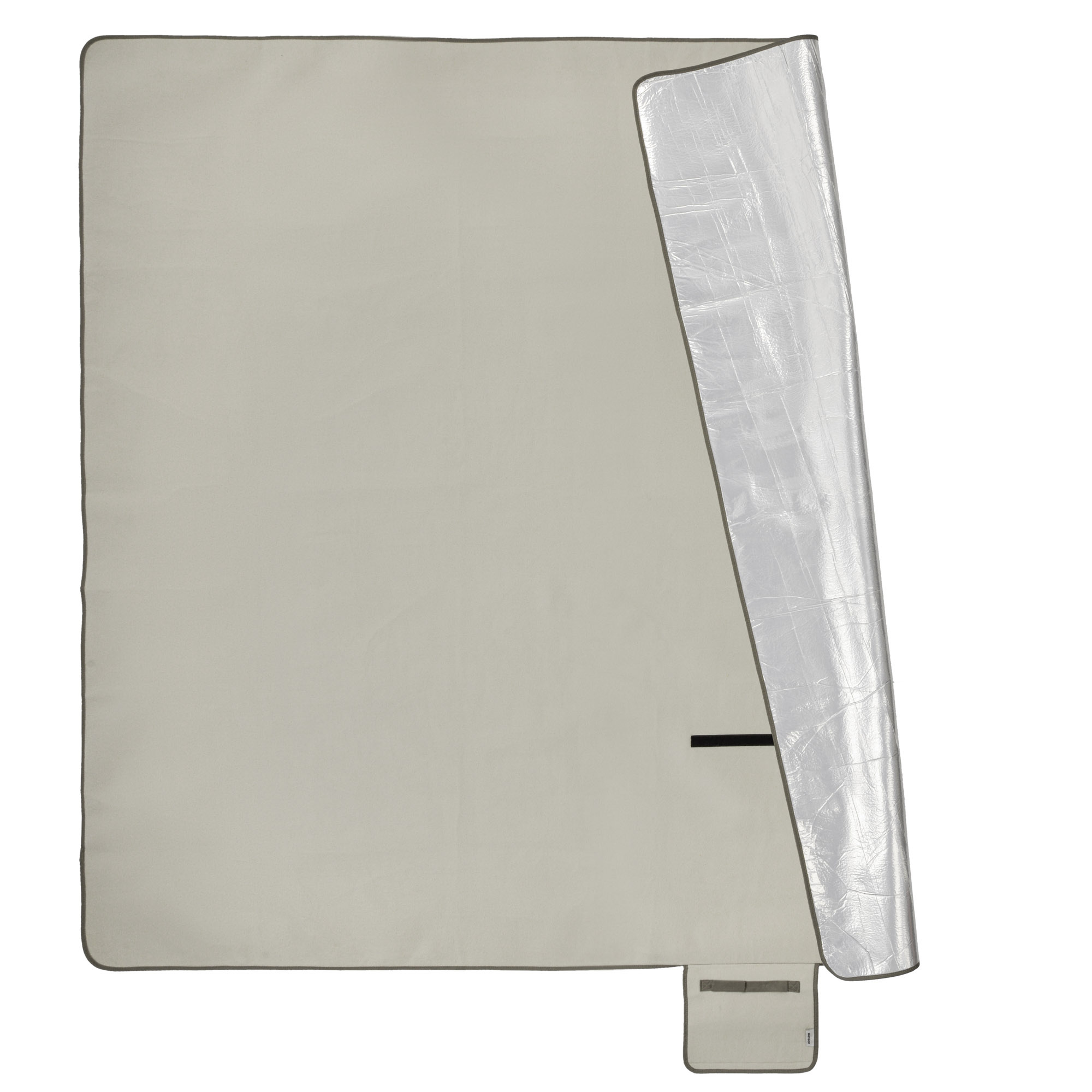 Przyjemna w dotyku powierzchnia z miękkiego polaru i wbudowanej warstwy pianki PVC zapewnia ciepło i komfort na chłodniejszych podłożach. Aluminiowy spód koca izoluje od chłodu i wilgoci. Duża powierzchnia koca piknikowego umożliwia swobodne korzystanie na różnych rodzajach podłoża, bez obaw o zabrudzenie czy przemoczenie.