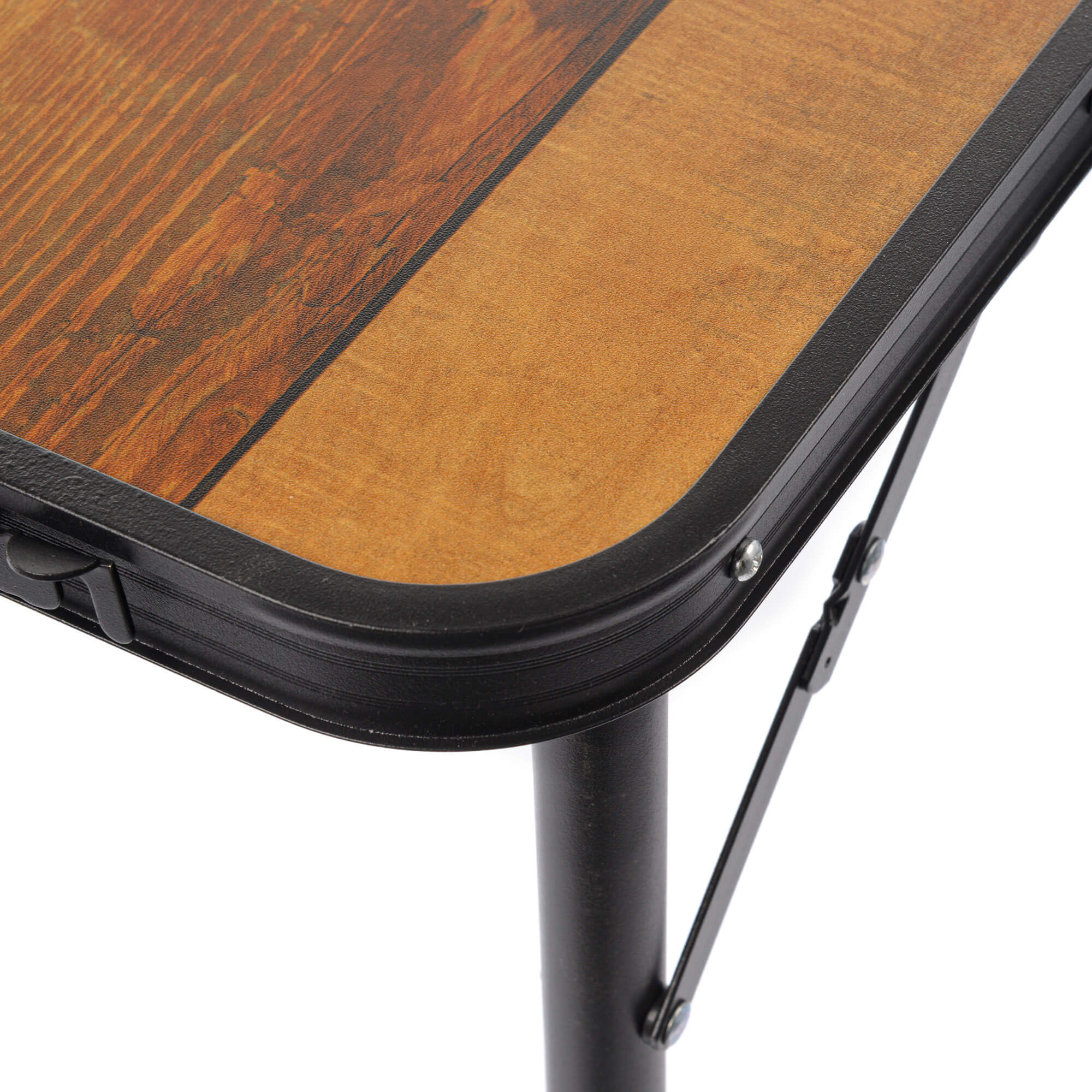 Dzięki składanej konstrukcji stół jest wyjątkowo poręczny. Prosty system rozkładania sprawia, że można go użyć w mgnieniu oka. Dostosowując się do potrzeb użytkownika, oferuje regulowaną wysokość - od 53 do 69cm, a wymiary blatu wynoszą aż 120x60cm. Nie musisz martwić się również, że stół przypadkowo złoży się sam, gdyż posiada on dwa haczyki zabezpieczające. Złożony zajmuje minimalną przestrzeń, co ułatwia jego przechowywanie nawet w niewielkim bagażniku. Atrakcyjny design sprawi, że nie tylko spełni swoją funkcję, ale również doda charakteru każdemu kempingowi czy spotkaniu na plaży.