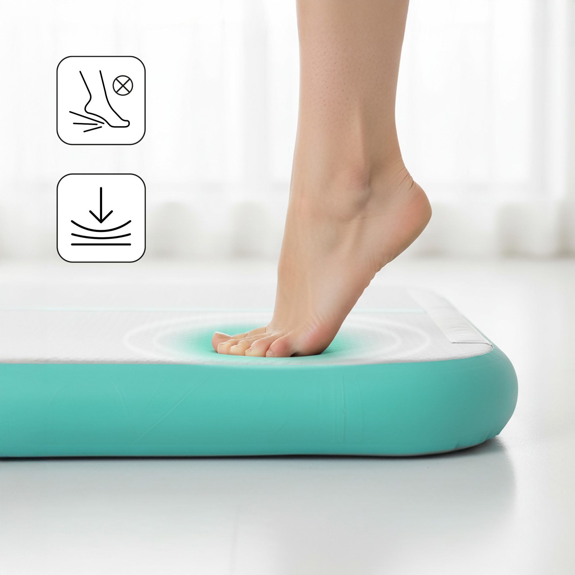 Nadmuchiwana konstrukcja umożliwia bezpieczne lądowanie podczas skoków oraz innych dynamicznych ruchów. Oferuje niezrównaną elastyczność, wygodę i bezpieczeństwo. Jej miękkość minimalizuje ryzyko urazów podczas treningu. Gładka powierzchnia posiada właściwości antypoślizgowe, nie wchłania wody i nie odkształca się. Wyposażenie w 4 poręczne uchwyty zapewnia bezproblemowe przenoszenie i przechowywanie.